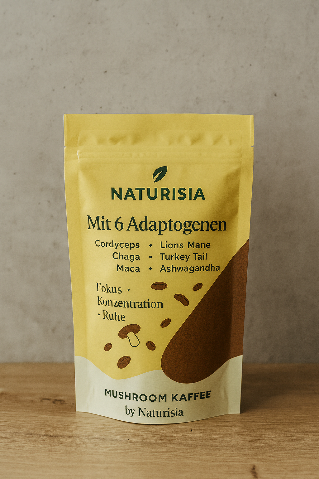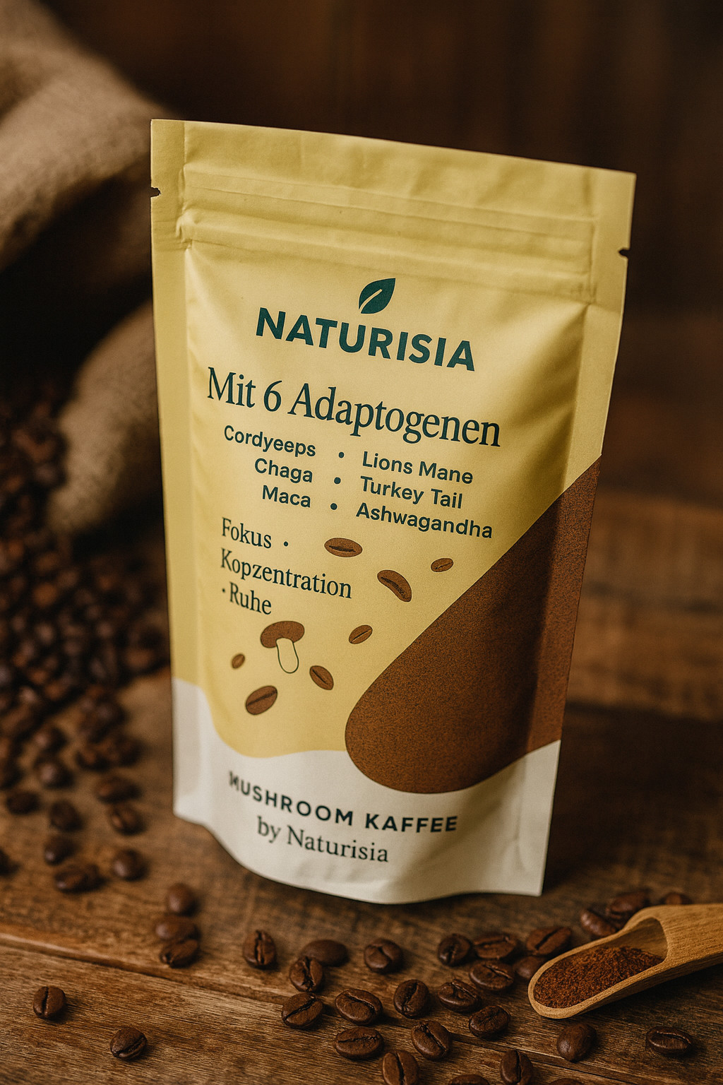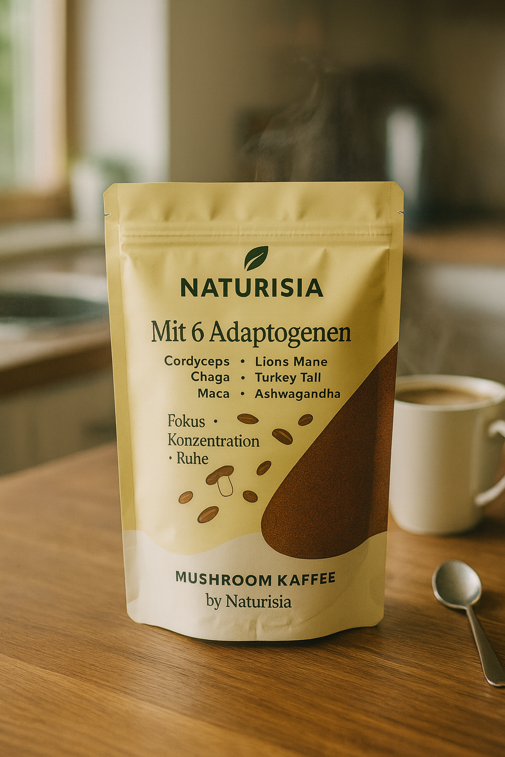 Mushroom Kaffee – sanfte Energie ohne Nervosität. Mit 7 Adaptogenen (u. a. Lion’s Mane, Cordyceps, Chaga, Ashwagandha, Maca) + Kakao & 5-HTP für Fokus, Ruhe & Produktivität – heiß oder kalt genießen